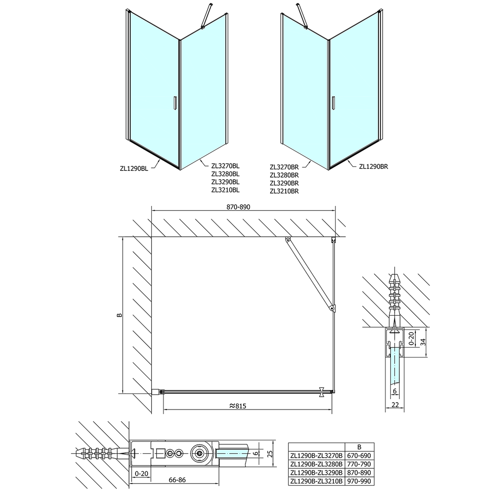 ZOOM Black Rechteckige Duschkabine 900x1000mm L/R Variante