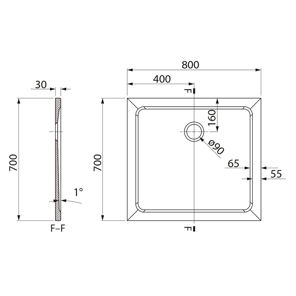 super flache Duschwanne 80 x 70 x 3 cm aus