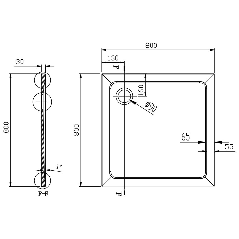 super flache Duschwanne 80 x 80 x 3 cm aus