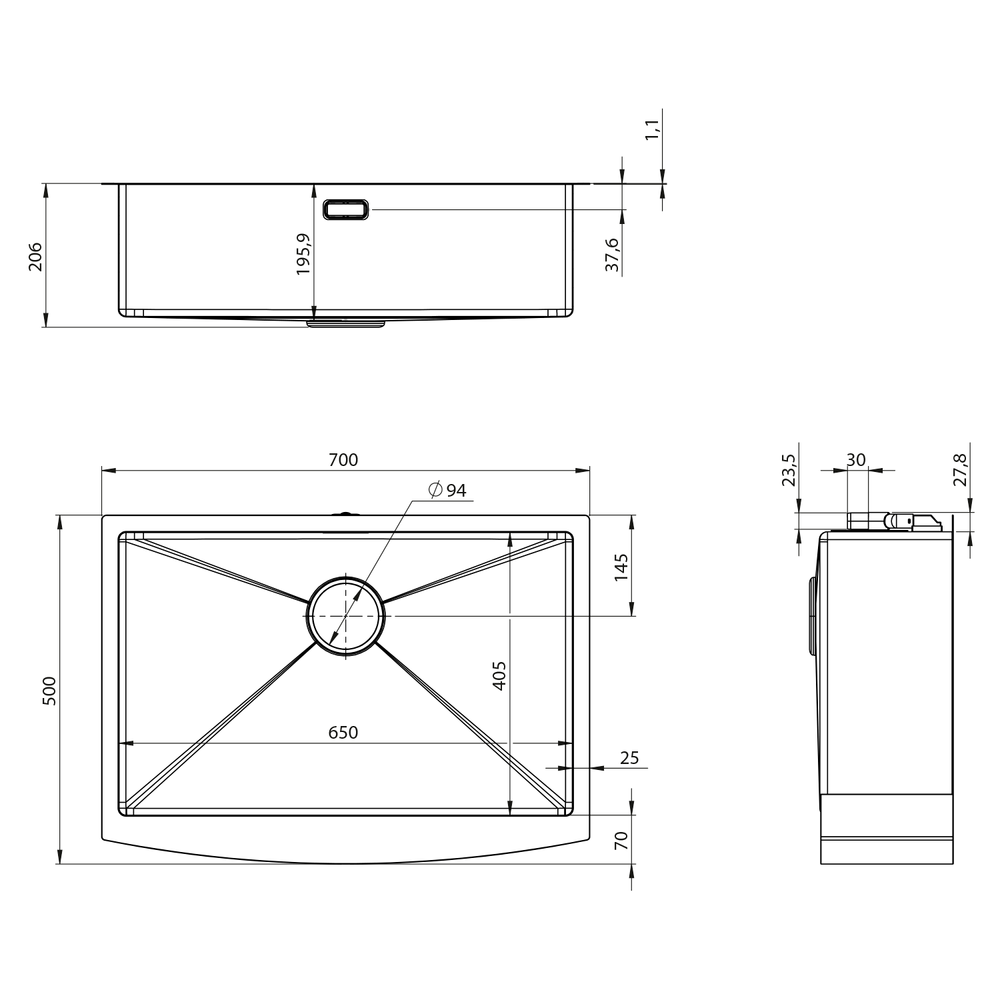 AMERICAN Edelstahlspüle 70x50cm, Gun metal