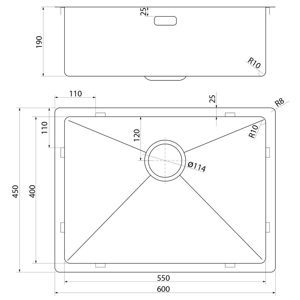 ZENITH Edelstahl-spüle 60x45cm, gun metal
