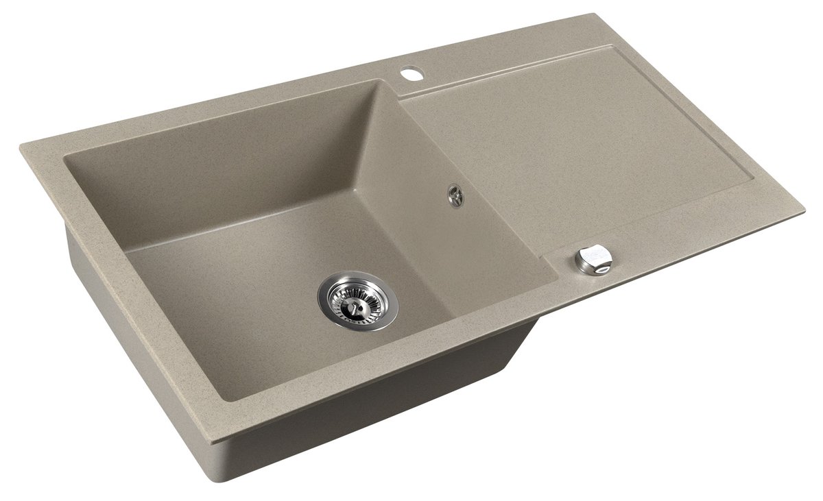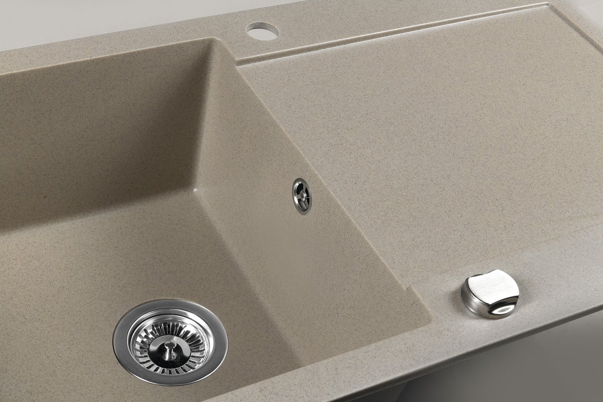 Einbau-Granitspüle mit Abtropffläche, 97x50cm, beige