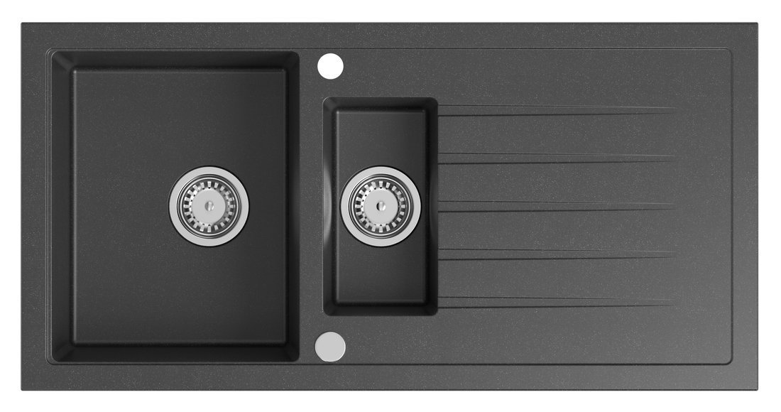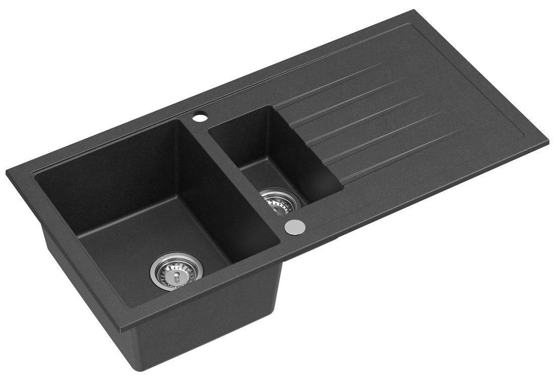 Einbau-Granitspüle mit Abtropffläche und Restebecken, 100x50cm, schwarz