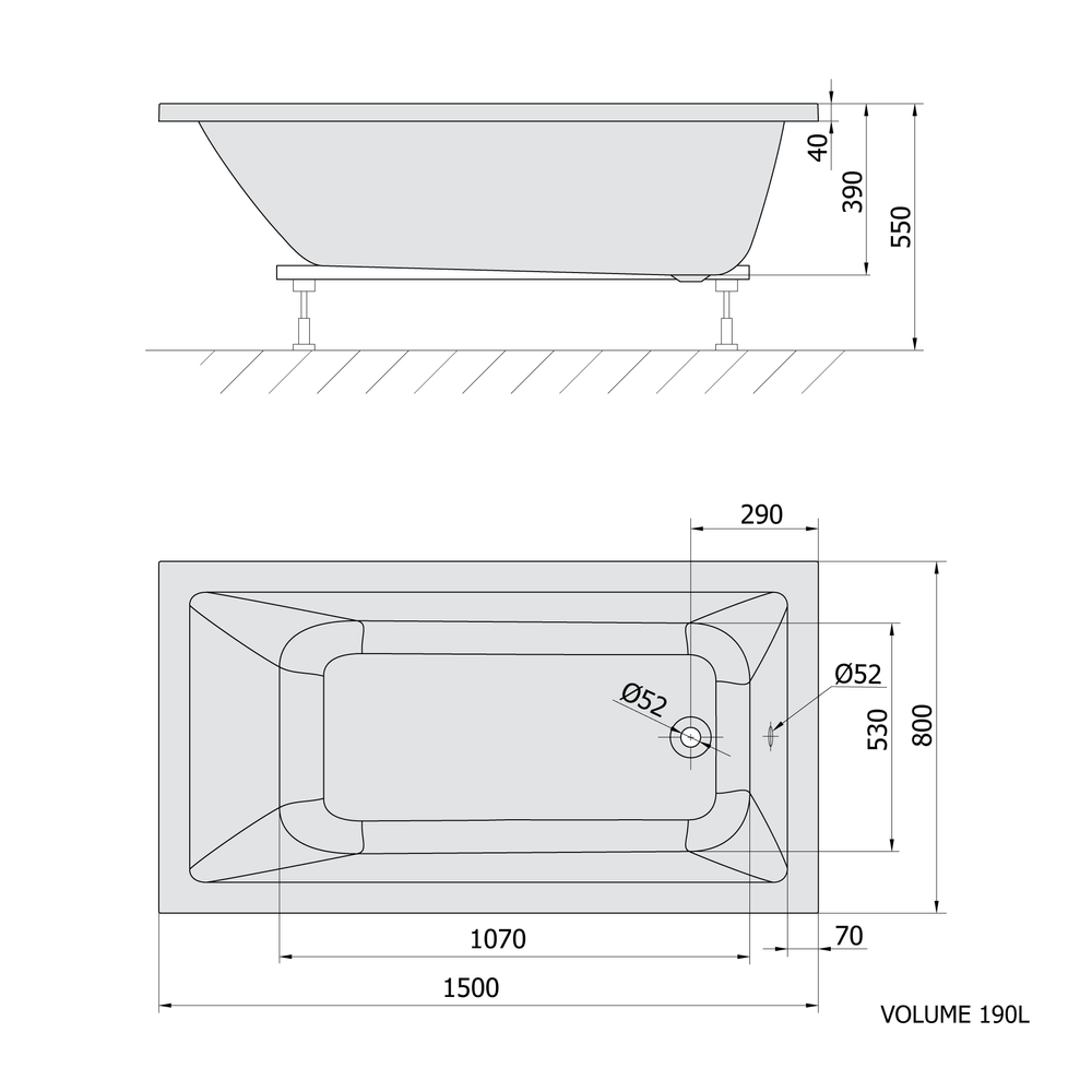 Badewanne Sundown Mono rechteck 150 x 80 platzsparend