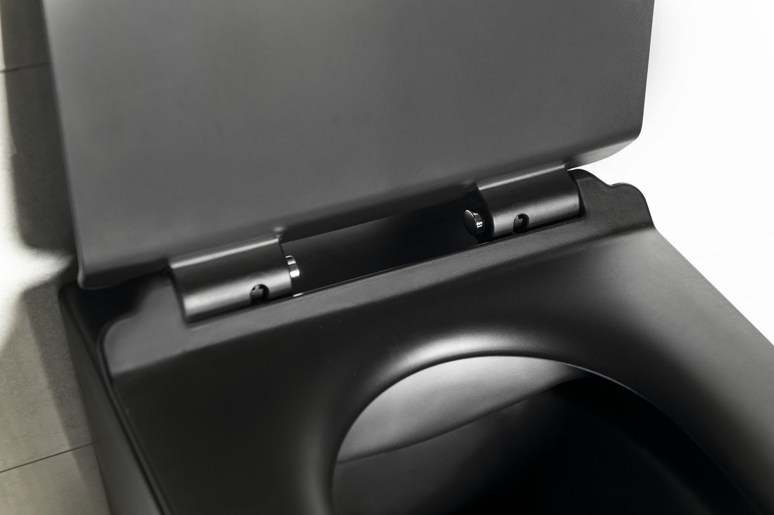 PACO Hänge-WC, randlos inklusive Slim WC Sitz Softclose, 36x53cm, Schwarz matt
