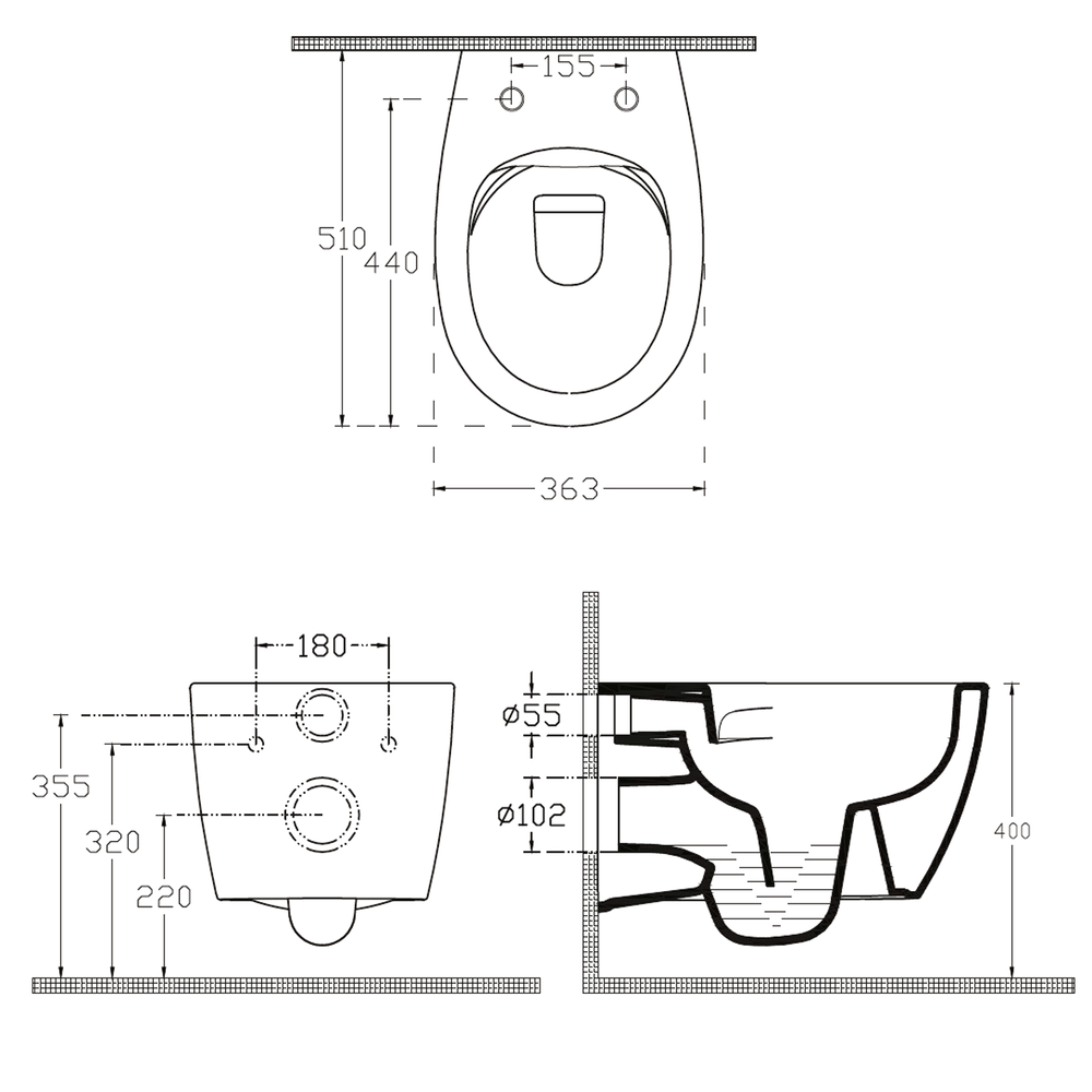 SENTIMENTI Hänge WC, Rimless, 36x51cm, weiss