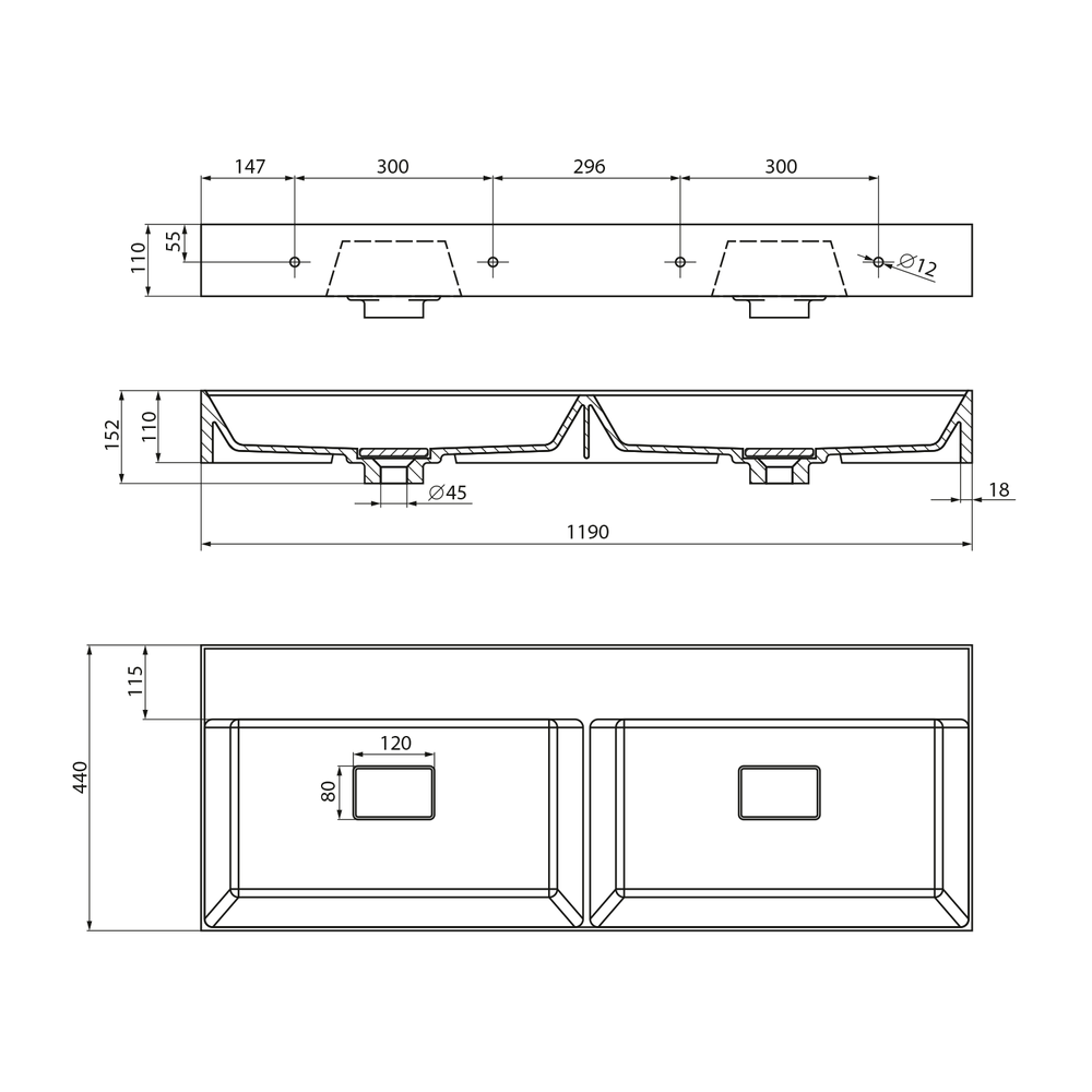 | Typ des Waschbeckens | Doppelwaschtisch |