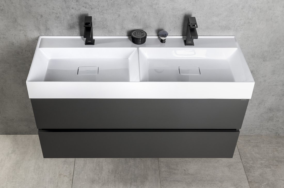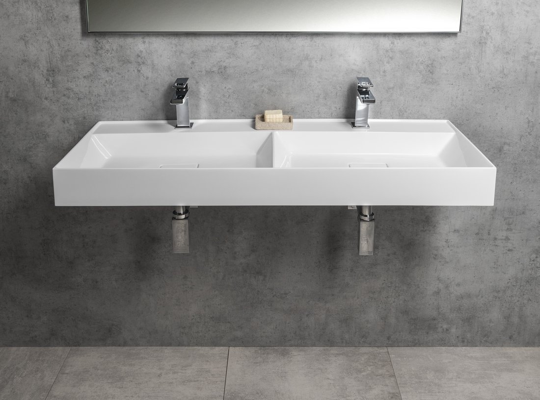 GODIVA Doppelwaschbecken, Gussmarmor, 119x44cm, Weiß