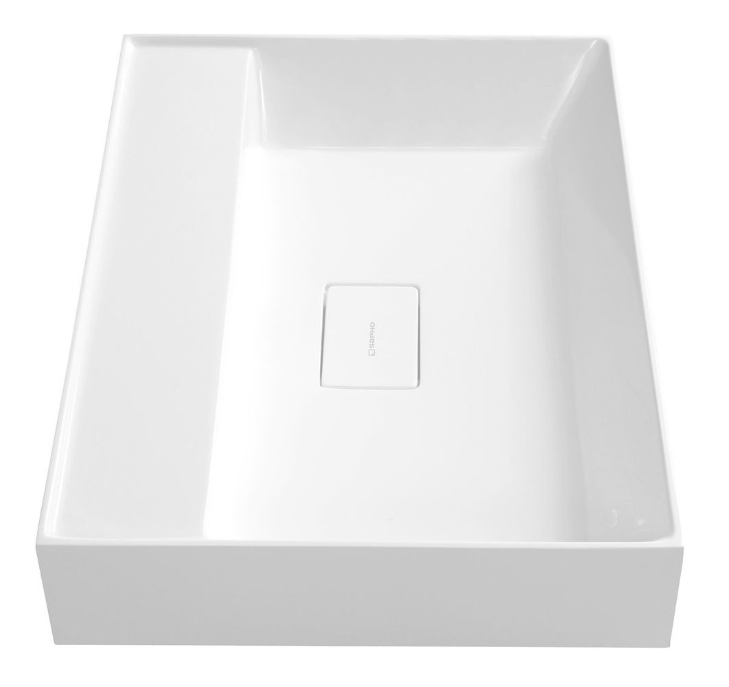 GODIVA Waschtisch, Gussmarmor, 58x44cm, ohne Armaturloch, Weiß