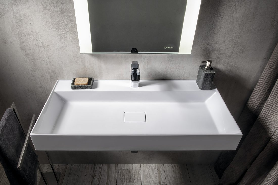 GODIVA Waschtisch, Gussmarmor, 96x44cm, Weiß