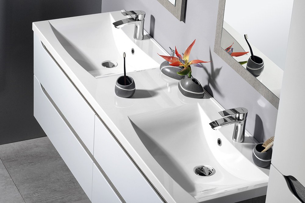 LUCIOLA Gussmarmor-Doppelwaschtisch 150x48cm, weiß