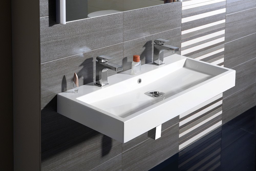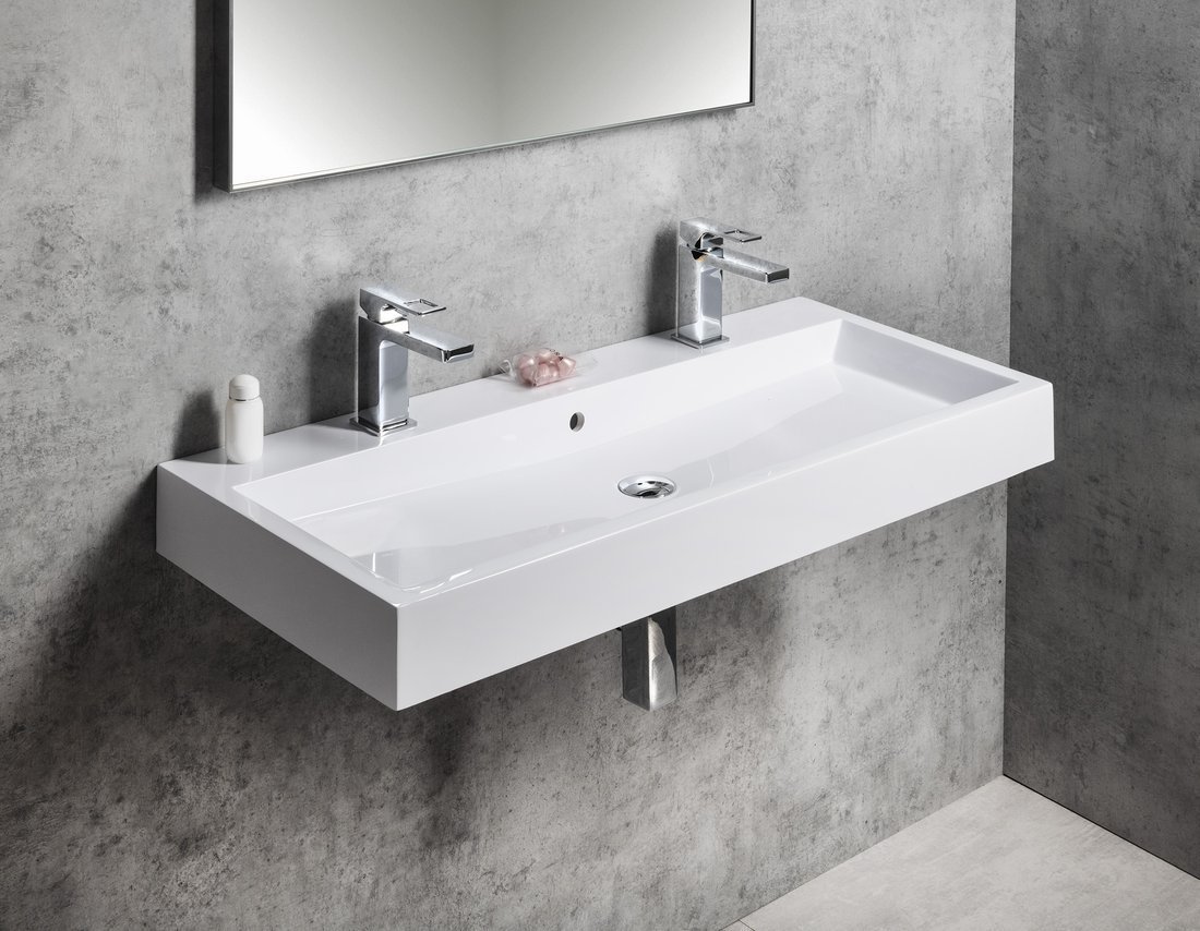 ORINOKO Gussmarmor-Doppelwaschtisch, 100x42 cm, Weiß