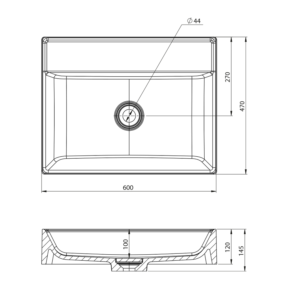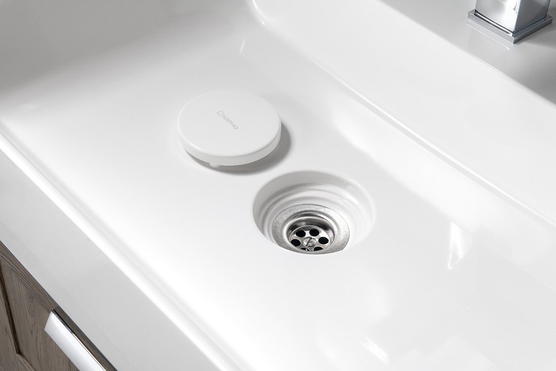 TWIG Gussmarmor-Waschtisch inkl. Ablaufabdeckung 60x47cm, ohne Loch für Armatur, weiß