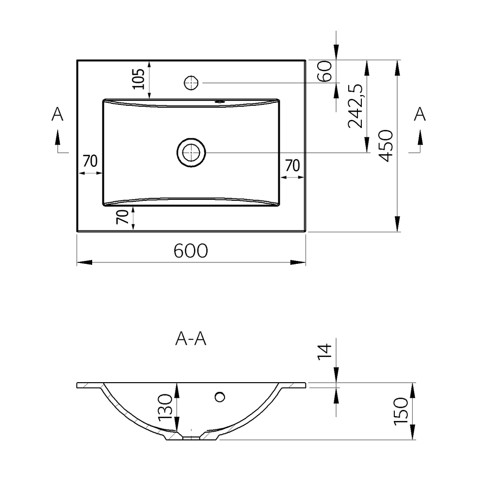 | Typ des Waschbeckens | Möbelwaschtisch |