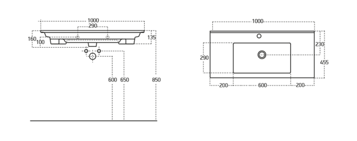 ZUNO 100 Keramik-Waschtisch 100x45cm, weiss