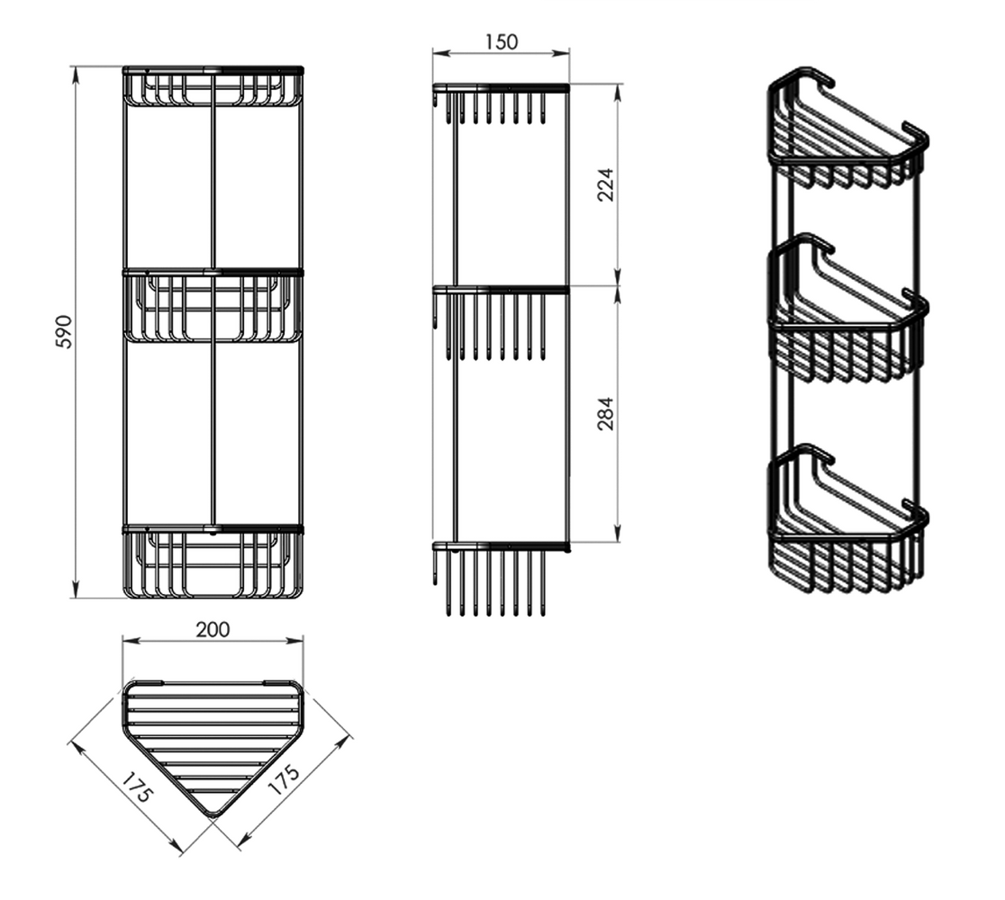 SMART Eckregal 3-Fach, 200x590x150 mm, Chrom