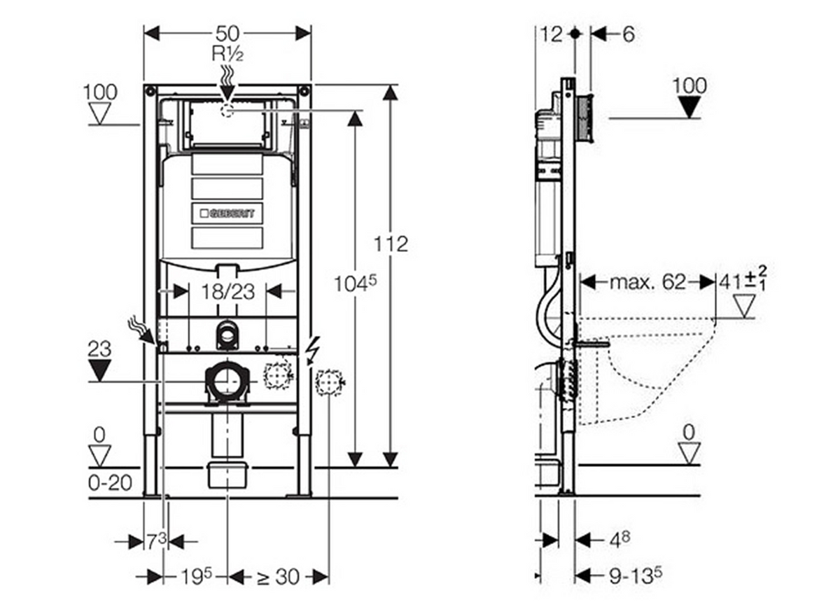 GEBERIT DUOFIX Wand-WC Element mit Sigma Spülkasten 12cm, für Trockenbau