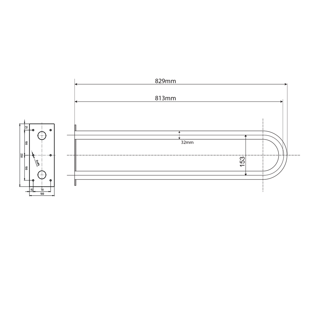 HANDICAP Stützgriff U-Form 813mm, polierter Edelstahl