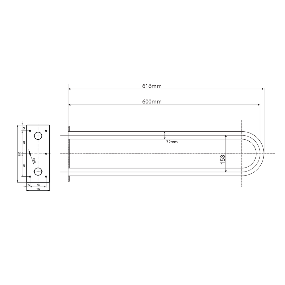 HANDICAP Stützgriff U-typ 600mm, Schwarz matt