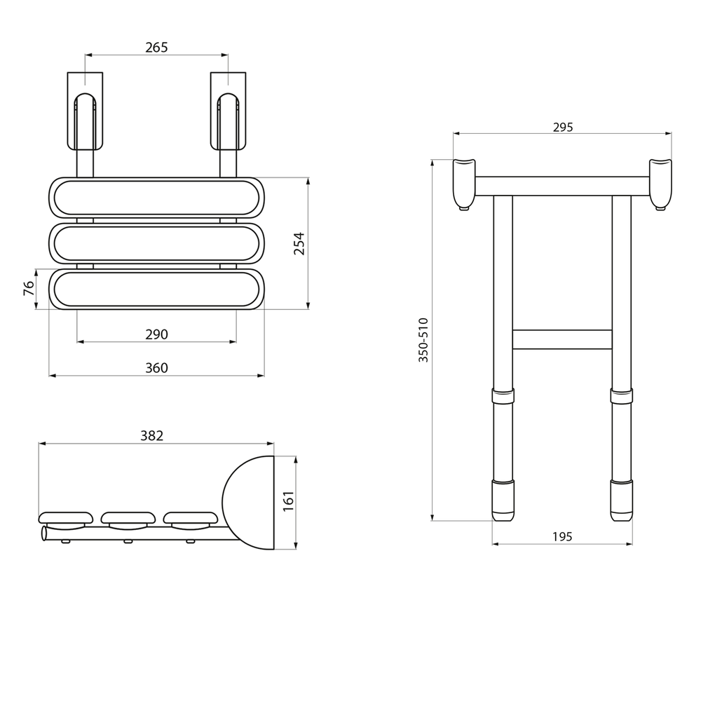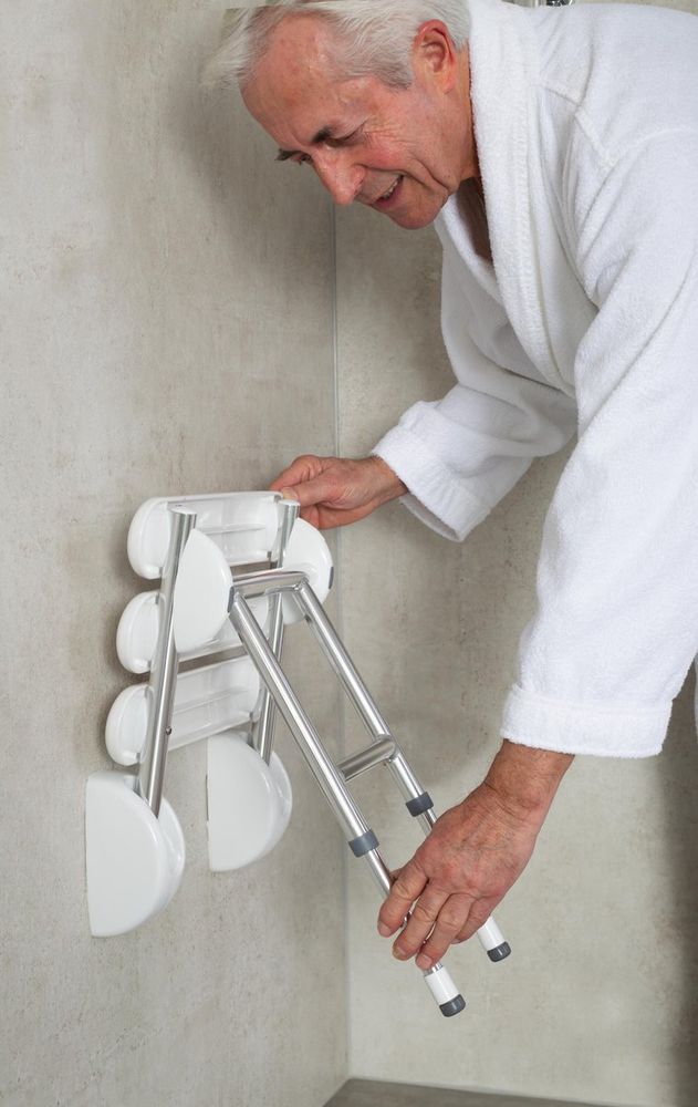 HANDICAP Duschklappsitz mit Stütze, 38x36cm, Weiß