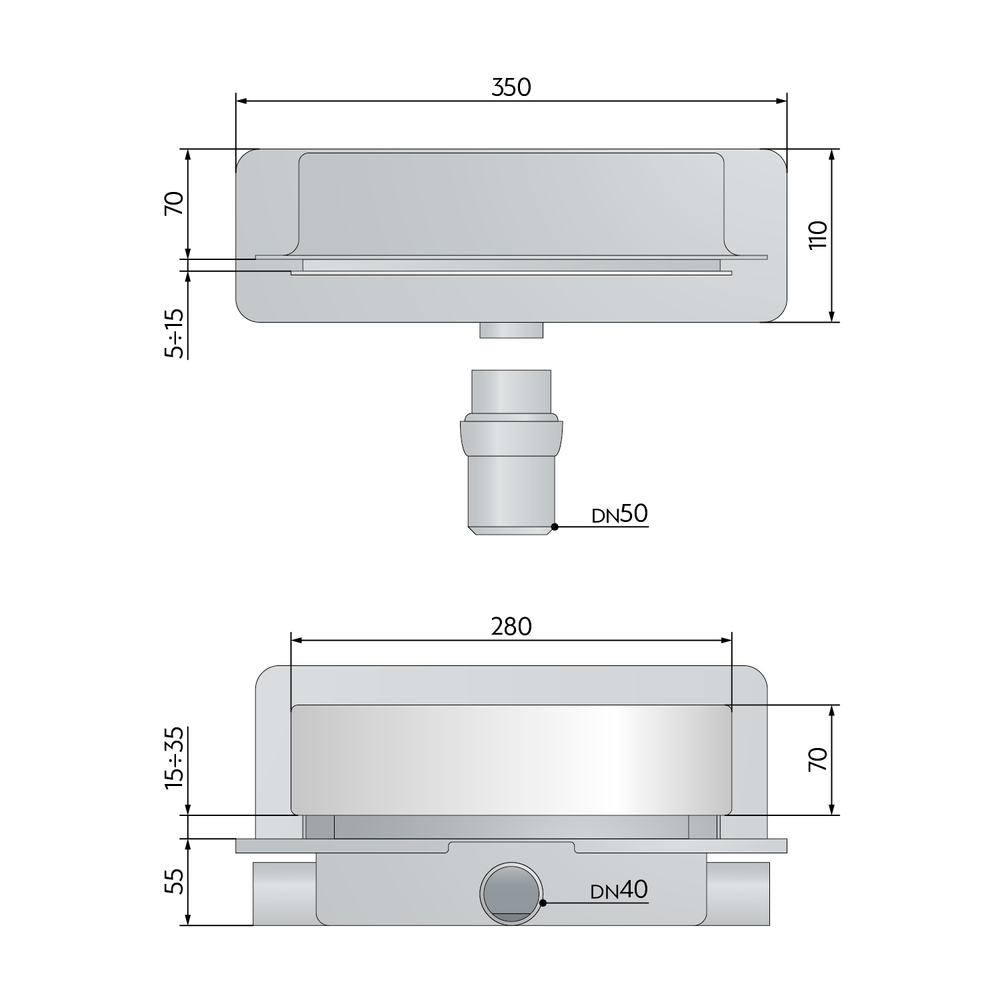 INTRAMURA Wandablauf, Deckel aus Edelstahl, L-350, DN40