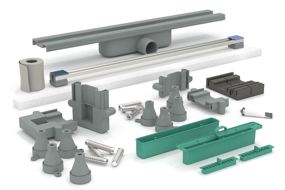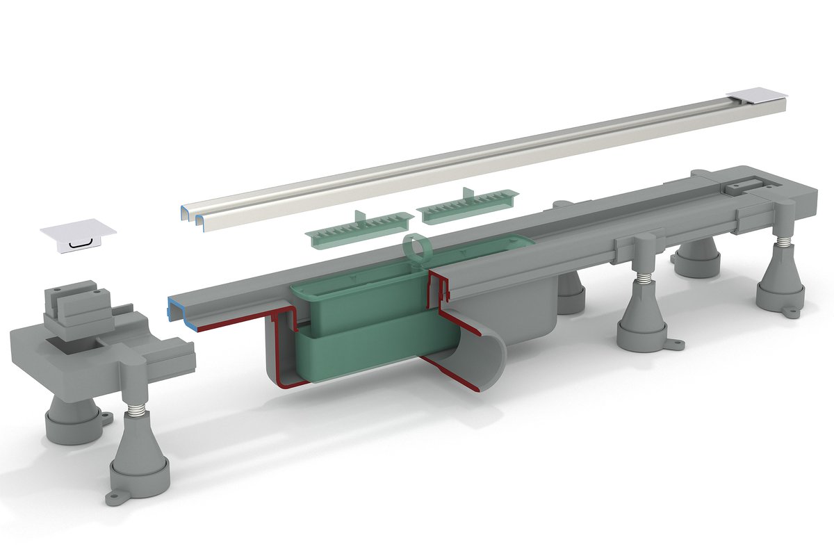 Badezimmern verwendet, wo es die Duschwanne oder den Bodeneinlauf ersetzt.