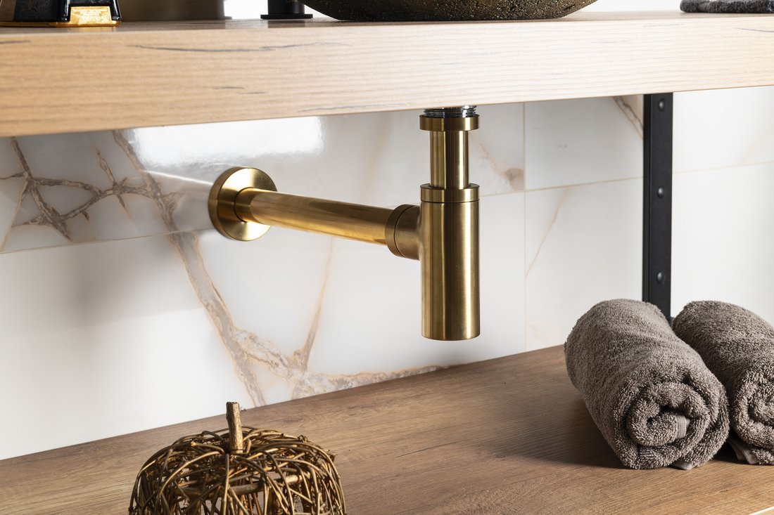 Waschbecken Siphon 5/4", Auslauf 32mm, Rund, Gold matt
